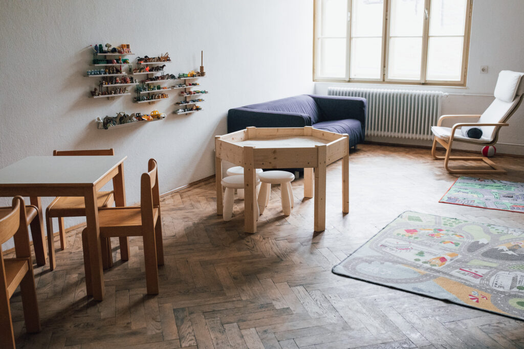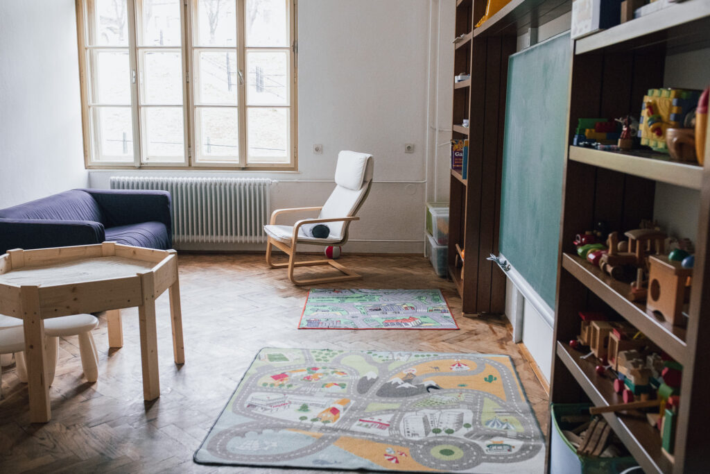 Soba za otroško terapijo in delavnice je zasnovana z mislijo na igro, ustvarjalnost in razvoj. Soba je opremljena s peskovnikom, lesenimi igračami, knjigami in številnimi drugimi pripomočki, ki spodbujajo domišljijo in omogočajo terapevtsko ali poučno igro.